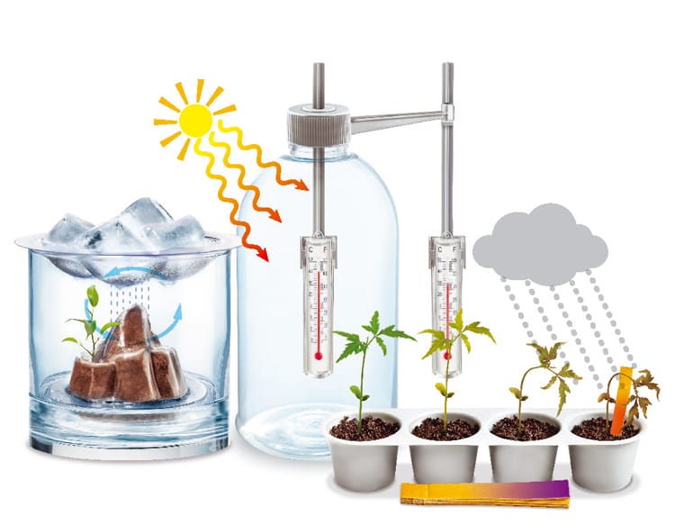 Bestudeer de wetenschap achter weersfenomenen met 4M Kidzlabs Green Science – Weather Science. Je experimenteert met statische elektriciteit en ziet hoe je haar gaat rechtstaan of hoe water “plooit”. Je leert hoe wolken, wind en luchtstromingen ontstaan. Je bestudeert ook het broeikaseffect en de effecten van zure regen. Tenslotte bouw je ook een mini-model van de watercyclus. Weldra heeft het weer dus geen geheimen meer voor jou!