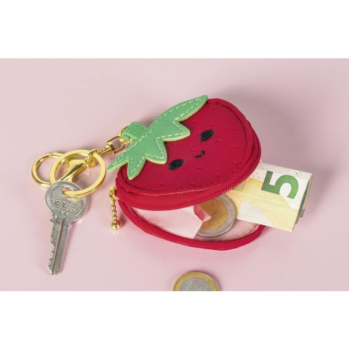 Superleuke sleutelhanger portemonnee in de vorm van een aardbei voorzien van goudkleurige sluiting.