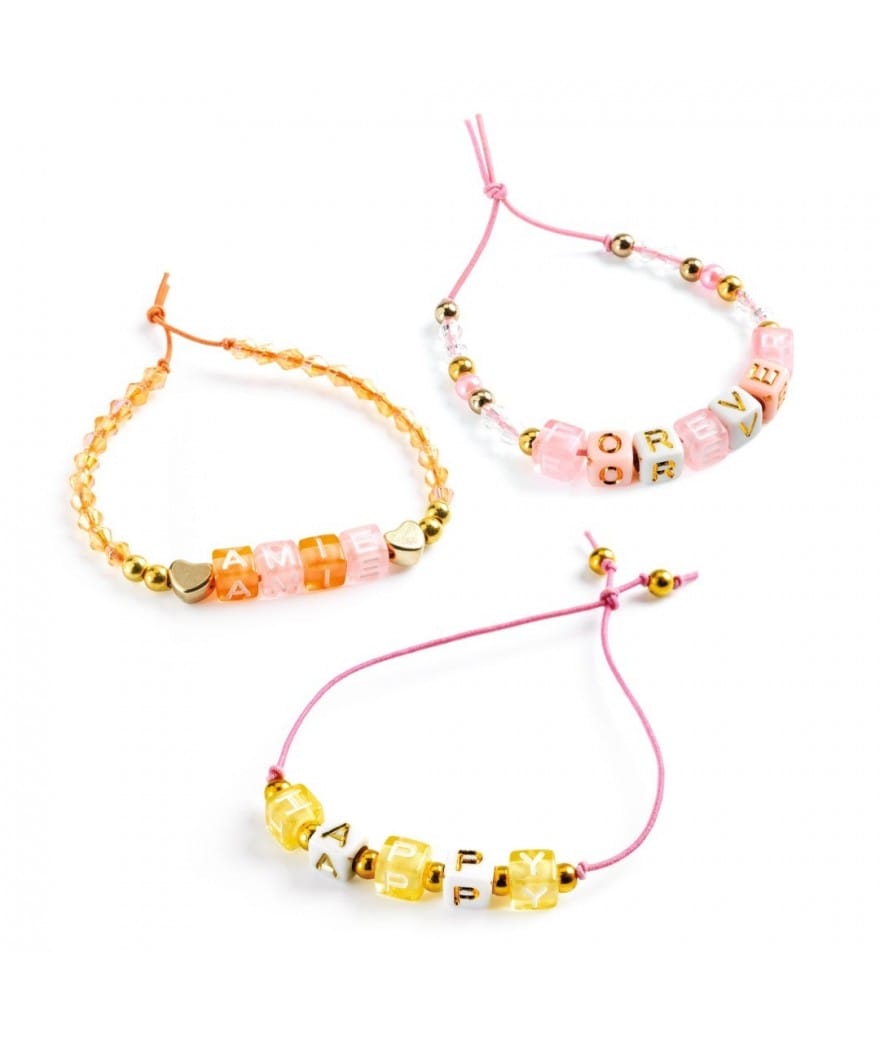 Een prachtige doos met 1000 kralen om mooie armbandjes te maken met voornamen of berichtjes. Een prachtig assortiment van gekleurde en goudkleurige kralen voor een harmonieus resultaat. Het kind rijgt de kralen aan de elastische draden om naar wens mooie armbandjes te maken.