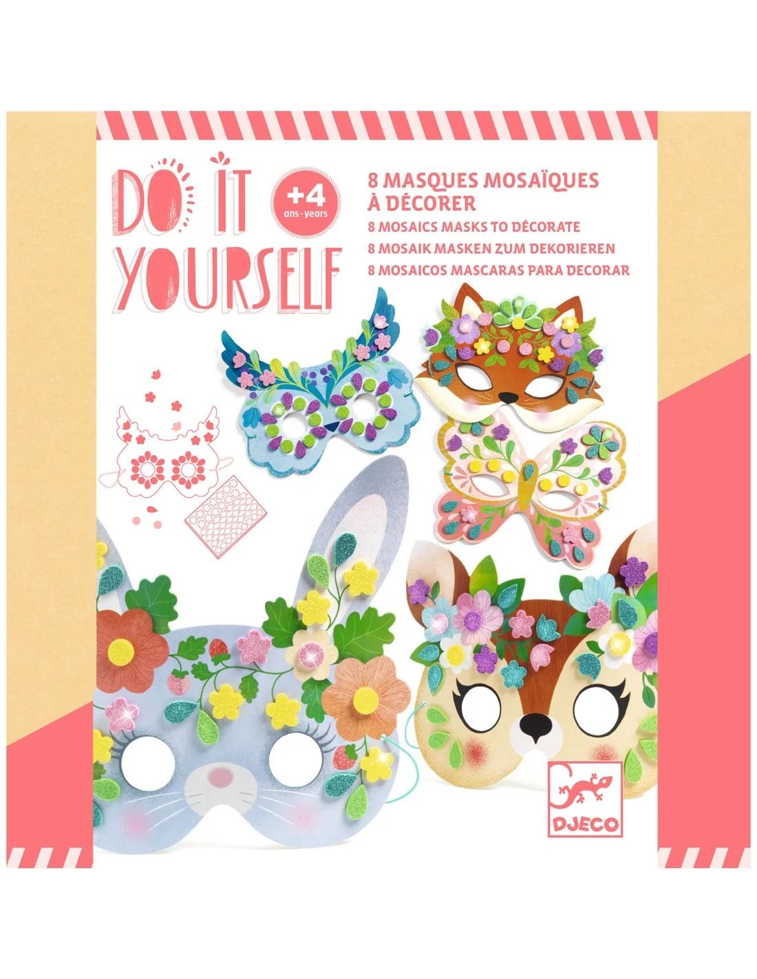 Een originele activiteit om 3 schattige dieren tot leven te brengen! Het kind rijgt houten kralen en voorgesneden elementen van dik karton aan de chenilledraad om zijn eigen modellen te maken. Een activiteit die de creativiteit, fijne motoriek en verbeelding stimuleert, met eindeloze mogelijkheden om de elementen te combineren en je eigen grappige dieren masker te ontwerpen.