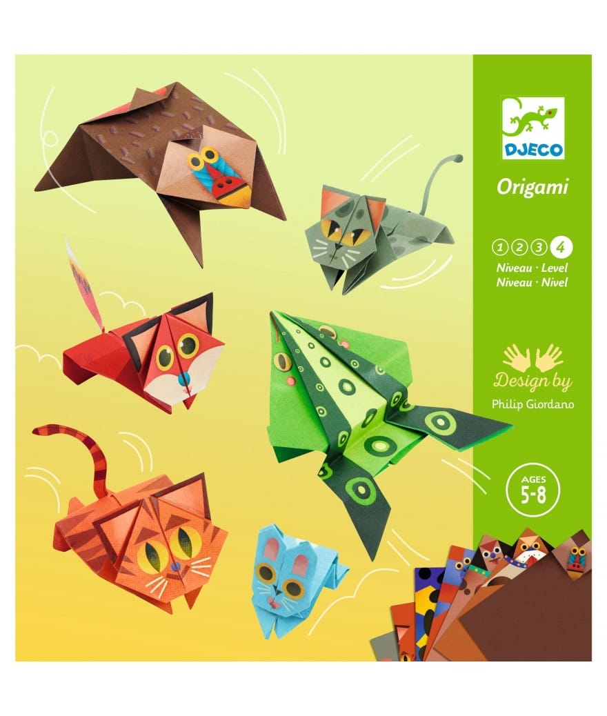 Huppelend konijn, hond die rollebolt, dartelende vos, rollebollende aap tal van springende origami-dieren om te ontdekken en om te maken dankzij dit mapje met gedetailleerde uitleg.