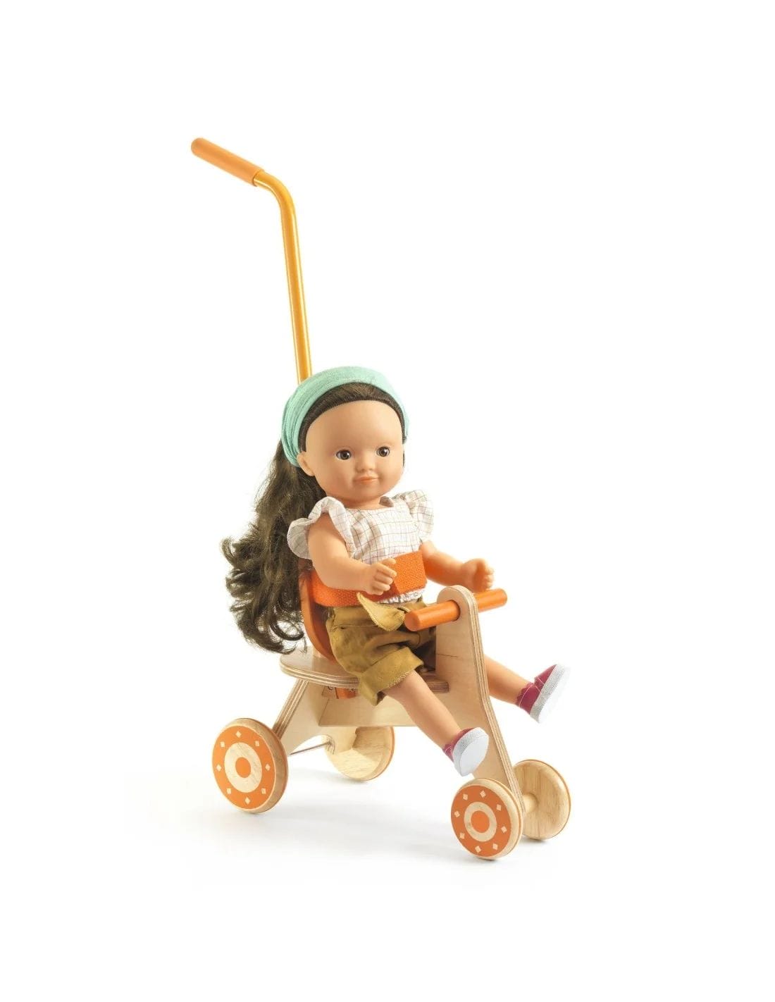 Minidriewieler speciaal voor poppen. De poppen zitten comfortabel en veilig dankzij de verstelbare riem. Ze zijn klaar voor een ritje in de tuin of slaapkamer. Kinderen zullen er dol op zijn.