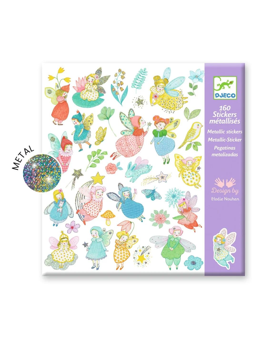 Een zakje met 160 glanzende stickers rond het tijdloze thema feeën. Meisjes met fonkelende vleugels, lieve kabouters, sterrenstof of bloemen met magische glans. Het kind plakt de vele stickers vrij om zijn eigen scènes te creëren of alles te versieren wat hij wil.