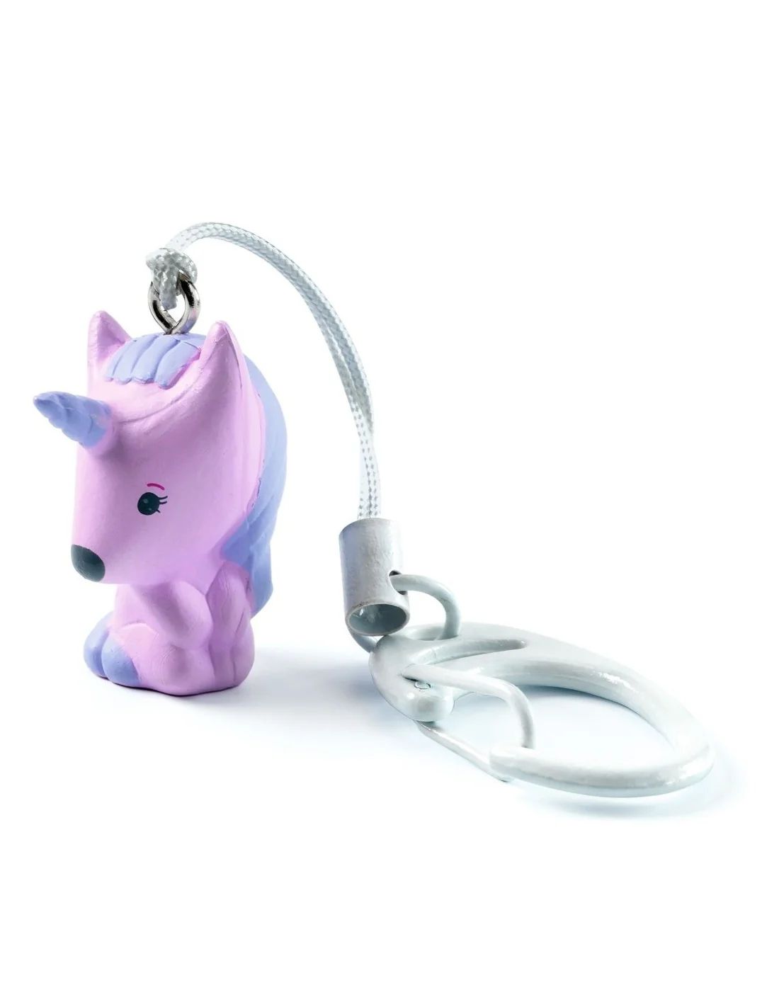Een sleutelhanger van wit metaal met een hangertje van “Gala”, de schattige en fijn ontworpen Tinyly-eenhoorn.