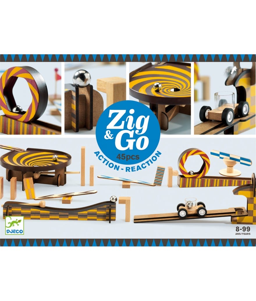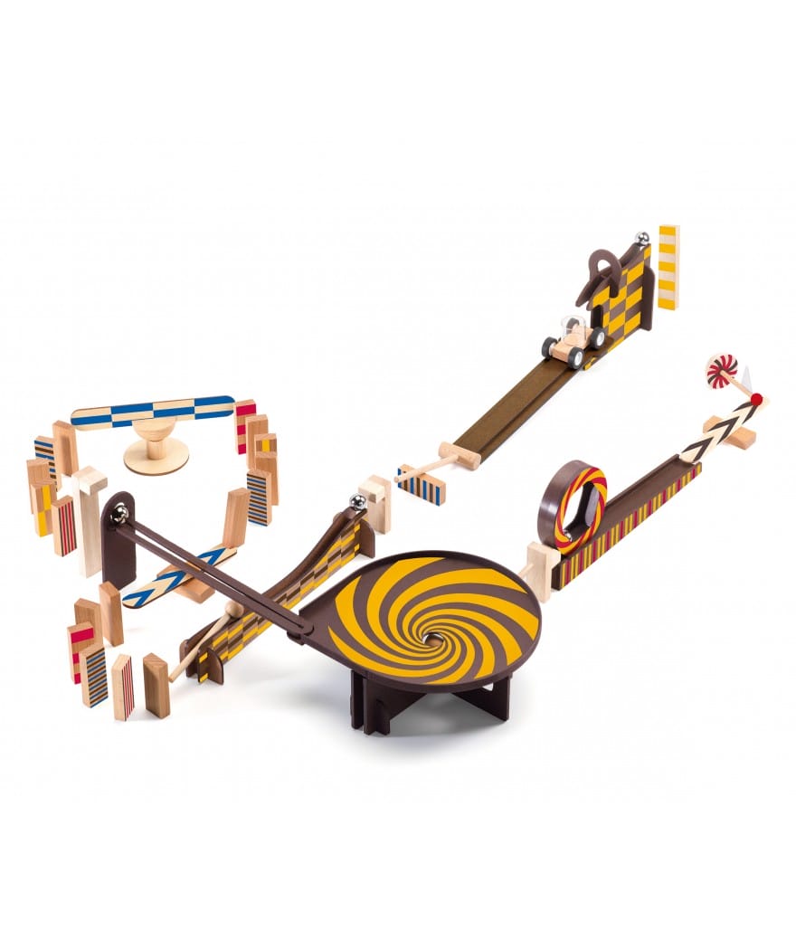 Ervaar de magie van de kettingreactie met deze nieuwe bouwsets van Djeco. Met deze 45-delige set kunnen spannende parcoursen gemaakt worden. Volg de stappen van het meegeleverde instructieboekje of verzin zelf een spannende baan. Alle sets van deze serie bouwsets kunnen met elkaar gecombineerd worden. De sets zijn ontworpen door Jean-René Ménard en zijn verpakt in een stevige kartonnen doos.