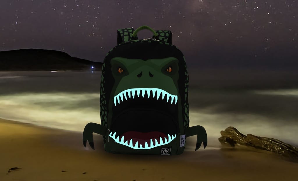 Deze Dino geïnspireerde rugzak van gerecyclede plastic flessen is ideaal voor leerlingen die om het milieu geven, en het mooiste is dat de scherpe tanden oplichten in het donker!