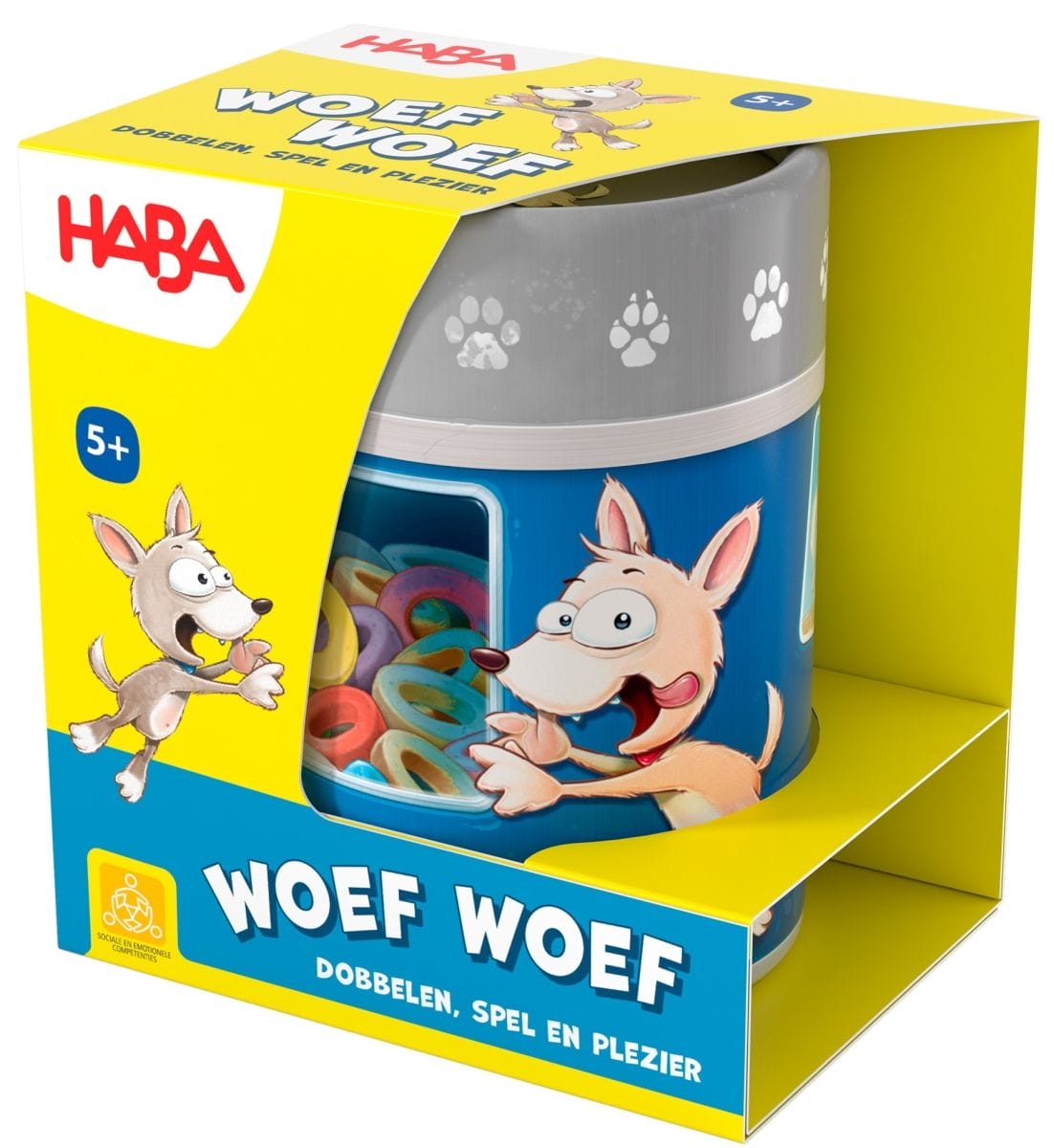 Met het Haba spel dobbelbeker Woef Woef beleef je elke keer weer een vrolijk dobbelavontuur! Dit kleurrijke en educatieve kinderspel is perfect voor jonge spelers vanaf 3 jaar en zorgt voor uren speelplezier aan tafel. De dobbelbeker en de vrolijke dobbelstenen maken elk potje tot een feestje, waarbij geluk en slim nadenken hand in hand gaan.Het spel is eenvoudig te leren, waardoor kinderen snel mee kunnen doen en hun eerste spelervaringen opdoen. Dankzij het compacte formaat neem je Woef Woef makkelijk overal mee naartoe, ideaal voor thuis, op vakantie of bij opa en oma. Laat de dobbelstenen rollen en ontdek wie de meeste punten weet te verzamelen!