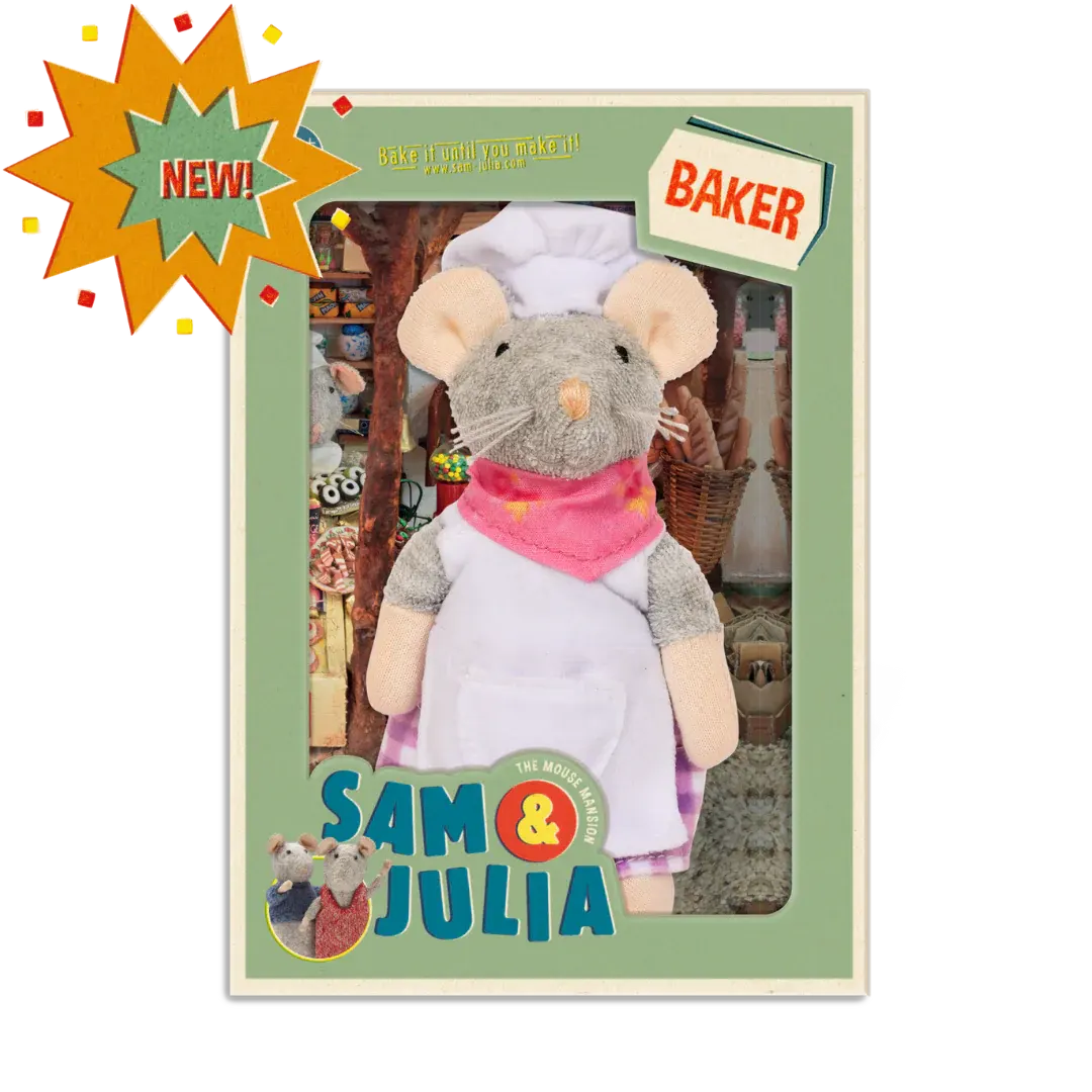 Deze kleine bakker werkt in de bakkerij van Het Muizenhuis. Elke ochtend staat ze vroeg op om het deeg voor haar heerlijke broden te kneden. Sam en Julia genieten van de geur van haar baksels als ze erlangs lopen op weg naar school. Je kunt alles lezen over hun avonturen in de Muizenhuis boekenreeks.