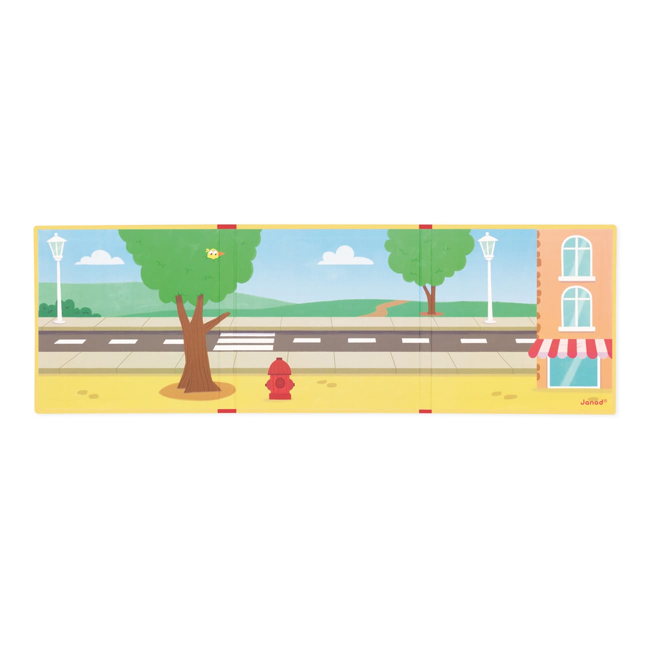 Dit magnetische verhaal bestaat uit een geïllustreerde achtergrond en 30 magneten. je kan er steeds weer een ander verhaal mee maken door de magneten te verplaatsen.