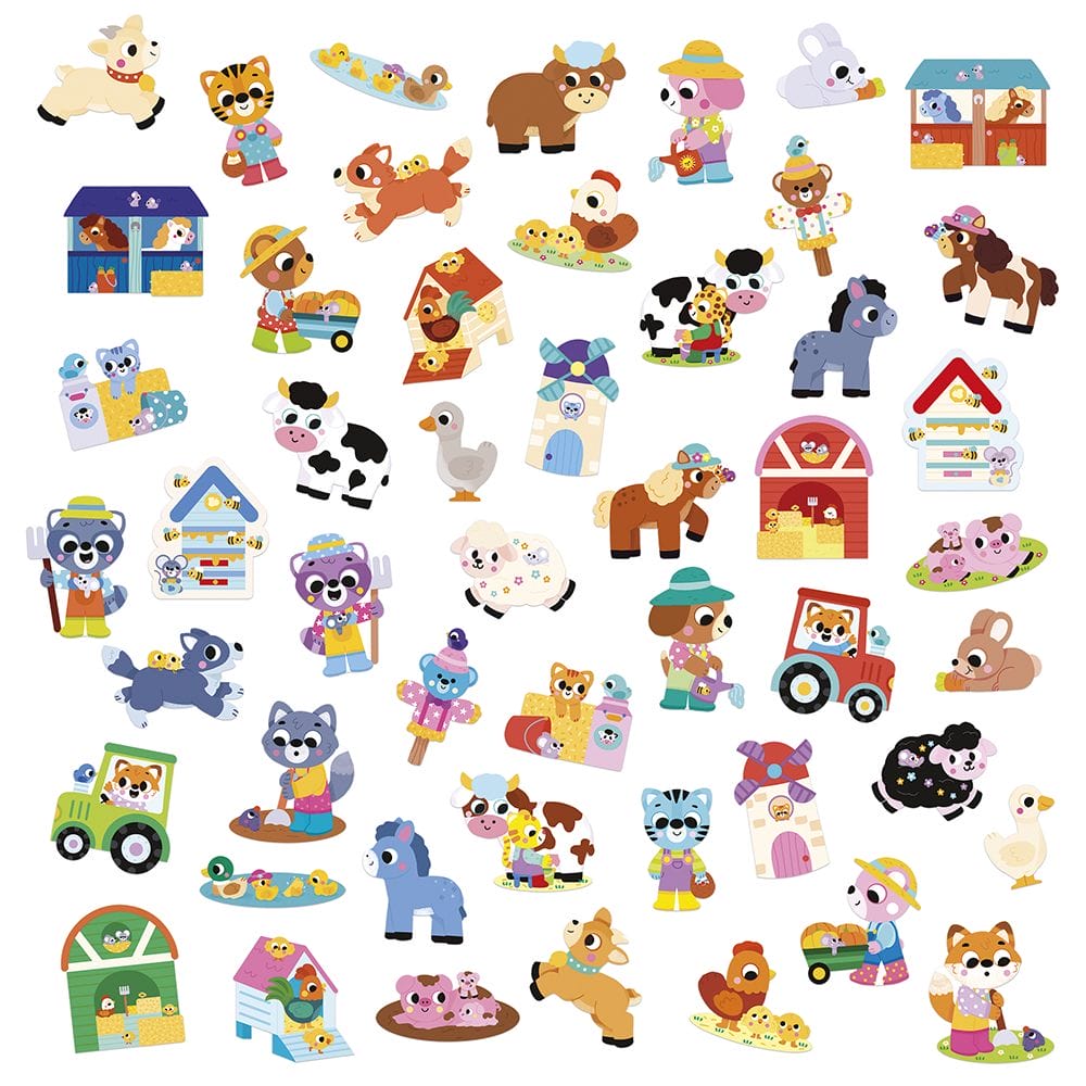 Welkom op de boerderij! Deze silhouetset in de vorm van een klein boerderijdier bevat 50 grote herbruikbare stickers met boerderijdieren als thema. Elke sticker heeft een halve snede om die gemakkelijk vast te pakken.