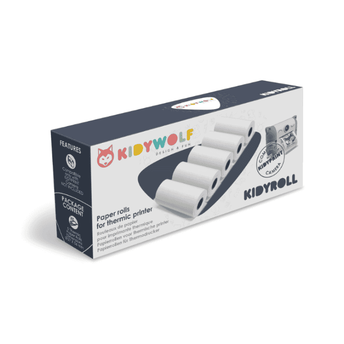 KIDYROLL biedt met zijn hoogwaardige rollen thermisch papier een praktische en veelzijdige ondersteuning voor je KIDYPRINT-apparaat. Deze rollen zijn verkrijgbaar in twee versies, klassiek thermisch papier en zelfklevend thermisch papier, en garanderen hoogwaardige zwart-witafdrukken voor elk vastgelegd moment.