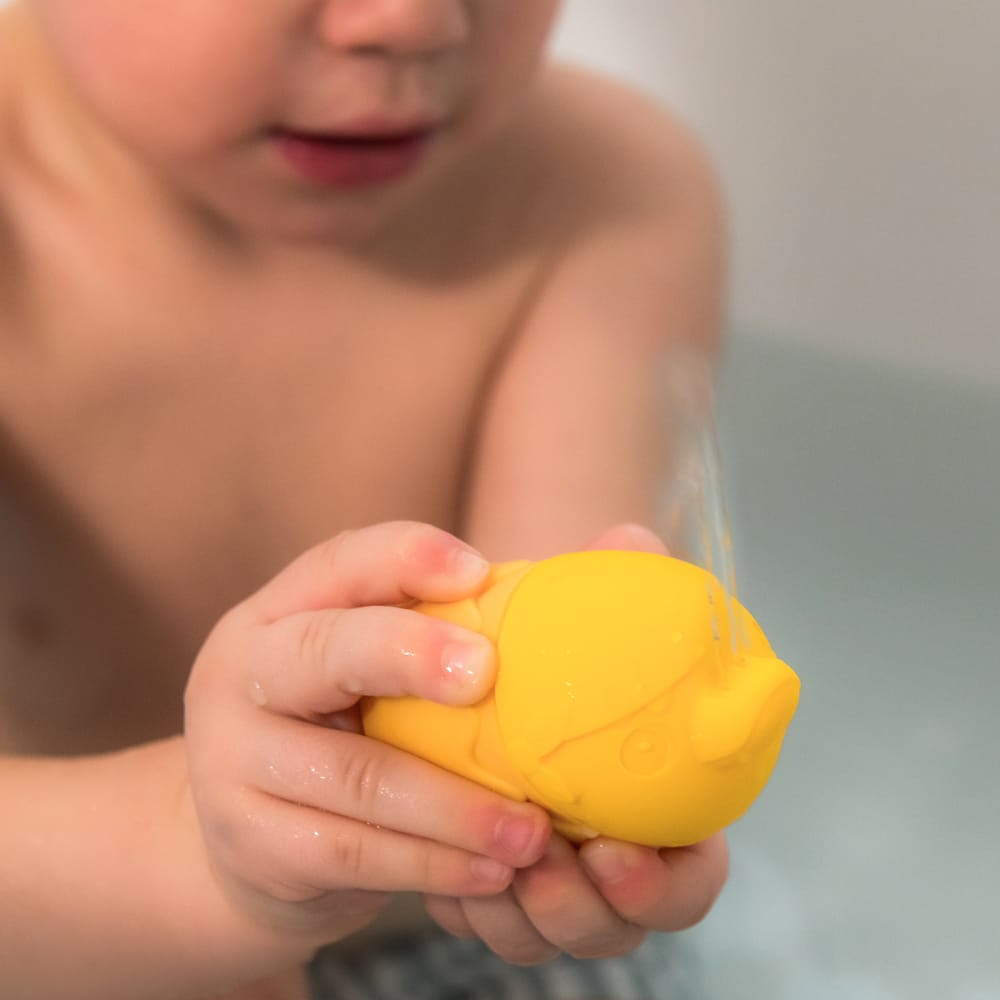 Gaspard de eend schept en sproeit water naar hartelust. Wil je na de waterpret even rusten in bad, dan dobbert hij in zijn eischelp rustig naast jou op het water. Hij schept en sproeit water naar hartelust.