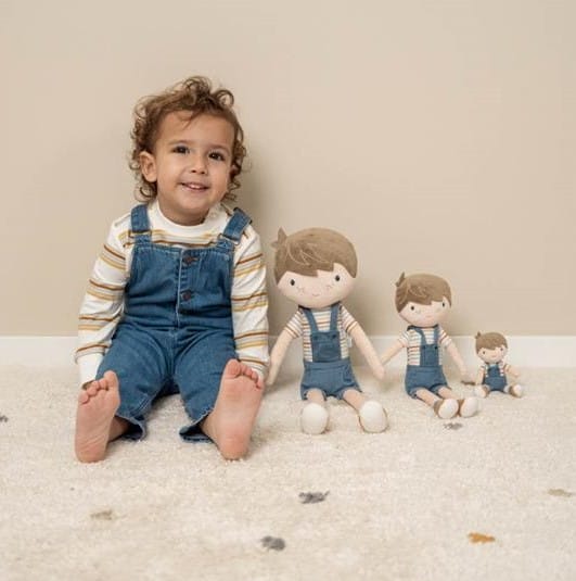 Dit is lieve, kleine Jim. Deze pluche knuffelpop van Little Dutch in een schattig tuinpakje wil graag geknuffeld worden. Jim is 50 cm. groot en wordt geleverd in een mooie doos.