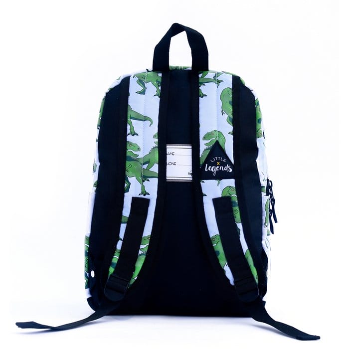 Prachtige Little Legends rugzak met stoere dino’s. Naast dat de rugzak er mooi uitziet, is de rugzak ook erg uitgebreid. De rugzak heeft een hoofdvak waarin ruimte is voor een broodtrommel en twee drinkbekers. Voor deze drinkbekers heeft de rugzak twee netvakjes, waardoor de bekers altijd rechtop blijven staan. Hiernaast heeft de tas twee zijvakken, waar bijvoorbeeld ook een beker ingedaan kan worden. Er zit een naamlabel op de achterkant de tas, waardoor de eigen tas altijd herkend kan worden. In het voorvak zit tevens een vakje voor een mobiel. De rugzak is comfortabel te dragen dankzij gewatteerde schouderbanden. De backpack heeft een regenhoes die over de tas heen gedaan kan worden tijdens de regenachtige dagen. Hierdoor blijft je tas altijd droog en mooi!