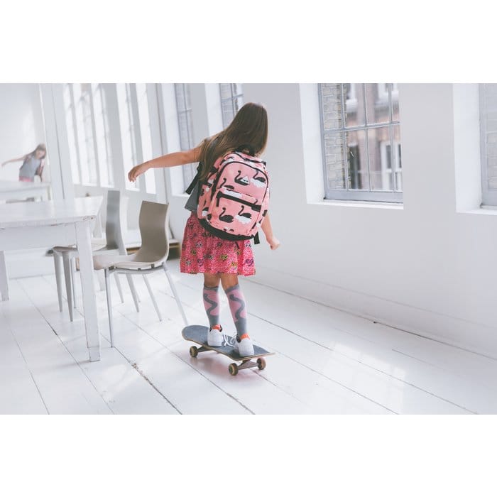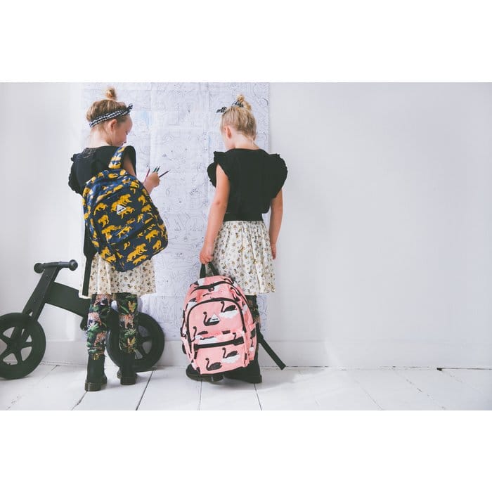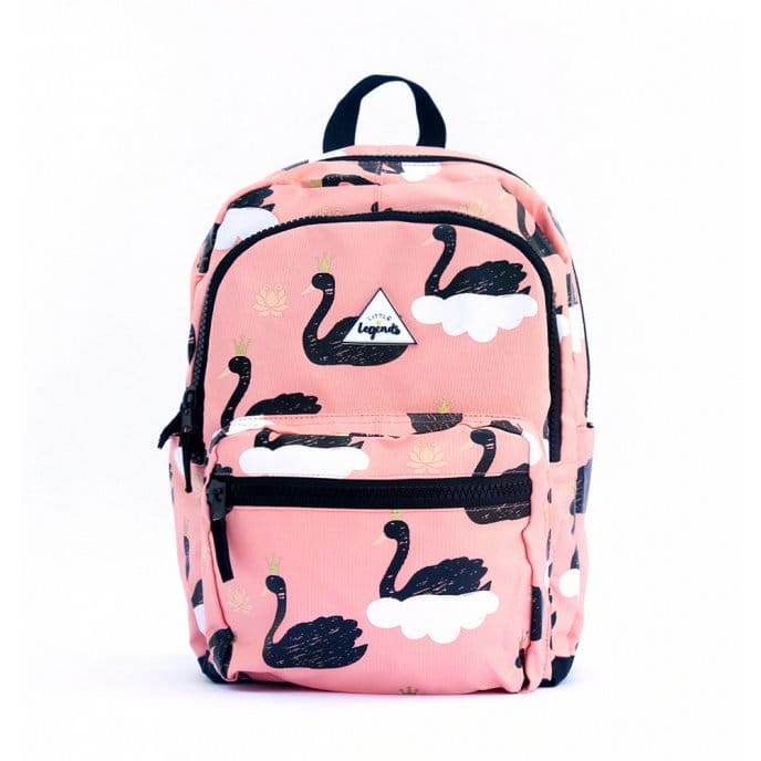Prachtige Little Legends rugzak met zwaantjes. Naast dat de rugzak er mooi uitziet, is de rugzak ook erg uitgebreid. De rugzak heeft een hoofdvak waarin ruimte is voor een broodtrommel en twee drinkbekers. Voor deze drinkbekers heeft de rugzak twee netvakjes, waardoor de bekers altijd rechtop blijven staan. Hiernaast heeft de tas twee zijvakken, waar bijvoorbeeld ook een beker ingedaan kan worden. Er zit een naamlabel op de achterkant de tas, waardoor de eigen tas altijd herkend kan worden. In het voorvak zit tevens een vakje voor een mobiel. De rugzak is comfortabel te dragen dankzij gewatteerde schouderbanden. De backpack heeft een regenhoes die over de tas heen gedaan kan worden tijdens de regenachtige dagen. Hierdoor blijft je tas altijd droog en mooi!