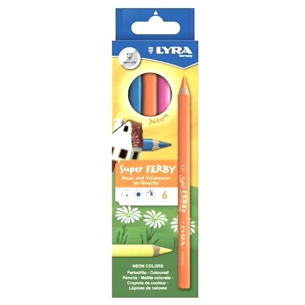 De prachtige Lyra Super Ferby kleurpotloden bieden wij nu ook in felle neon kleuren aan.Deze potloden zijn driehoekig en goed voor de ontwikkeling van de juiste pengreep. Dit potlood breekt niet van binnen waardoor het hele potlood opgekleurd kan worden. Makkelijk te slijpen door de goede kwaliteit van het hout.