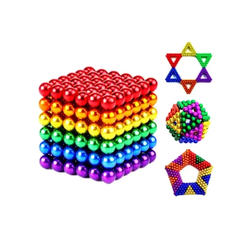 De kubus bestaat uit 216 magnetische balletjes van 5mm groot. Ieder balletje is magnetisch, heeft een noord en een zuidpool en kan los van elkaar bewegen waardoor je met de balletjes allerlei soorten figuren en creaties kan maken.