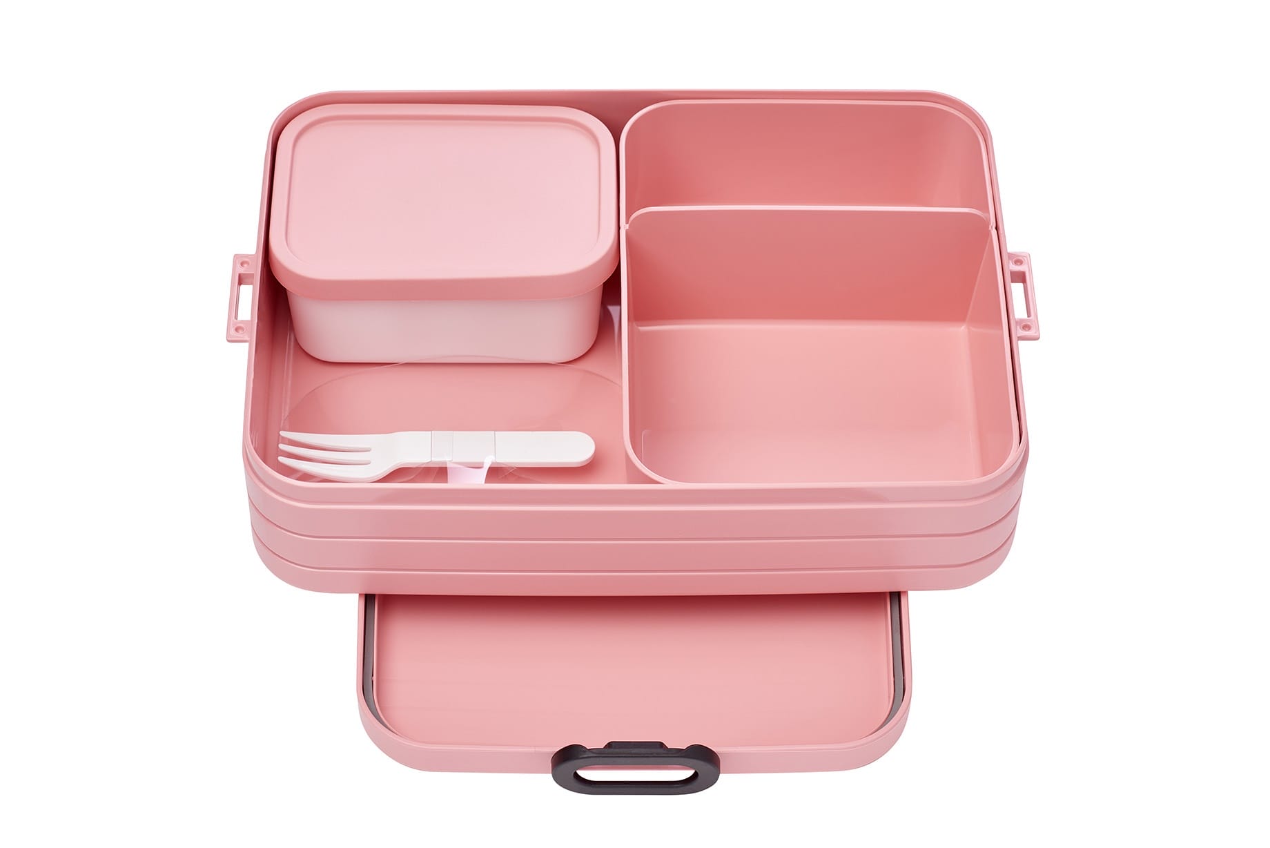 Lunchbox Take a Break large inclusief bento boxjes. Nog restjes over van gisteren? Neem ze gerust mee onderweg. Met twee aparte vakken, plus een extra box met vorkje, houdt de Bento in jouw lunchbox je lunch altijd heerlijk vers!