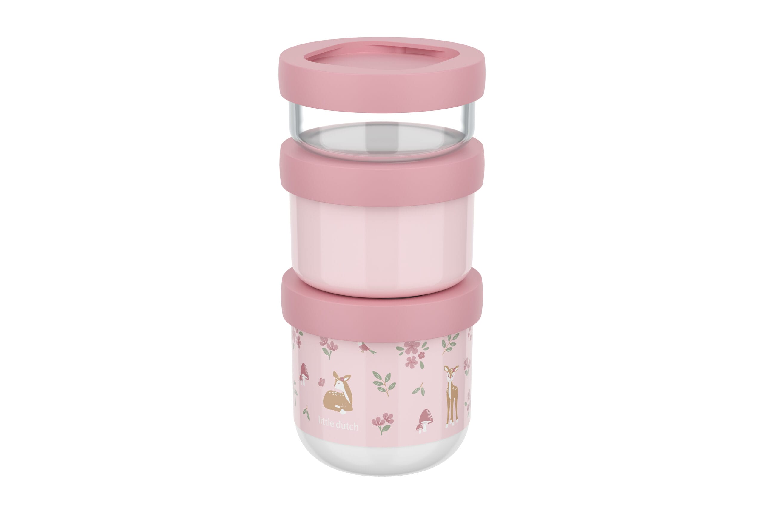 De 3-delige stapelbare snackbox met de Fairy Garden print combineert functionaliteit met een magisch design. Deze set van drie stapelbare bakjes is ideaal voor het meenemen van (gezonde) snacks, speentjes of haarelastiekjes. De bakjes klikken stevig op elkaar, zodat je alles netjes en compact kunt meenemen. Gemaakt van BPA-vrij, duurzaam materiaal en eenvoudig schoon te maken in de vaatwasser. Het betoverende Fairy Garden ontwerp, van Little Dutch met feeën en bloemen maakt deze snackbox set extra bijzonder.