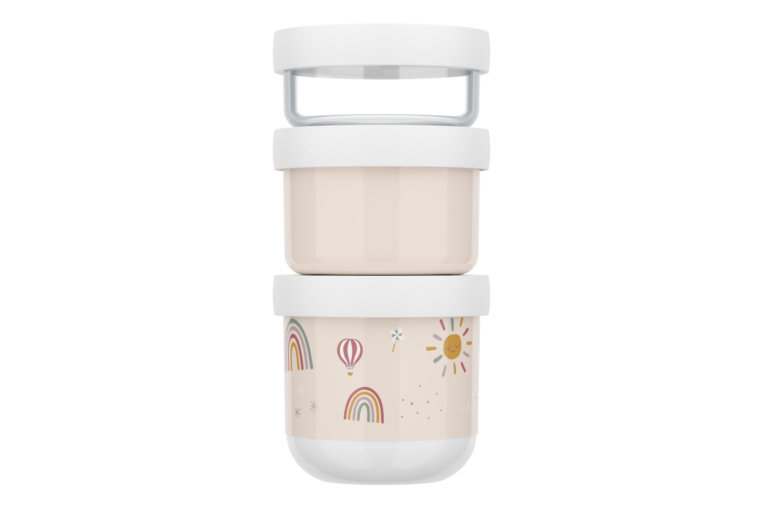 De 3-delige stapelbare snackbox in het Sunshine & Rainbow patroon is perfect voor het meenemen van (gezonde) snacks en andere benodigdheden. De set bevat drie bakjes die je stevig op elkaar draait, hierdoor neem je zoveel mee als nodig. Het stapelbare ontwerp houdt alles netjes en georganiseerd. Gemaakt van BPA-vrij, duurzaam materiaal dat vaatwasserbestendig is. De kleurrijke Sunshine & Rainbow print voegt een vrolijke noot toe aan deze praktische snackbox set.