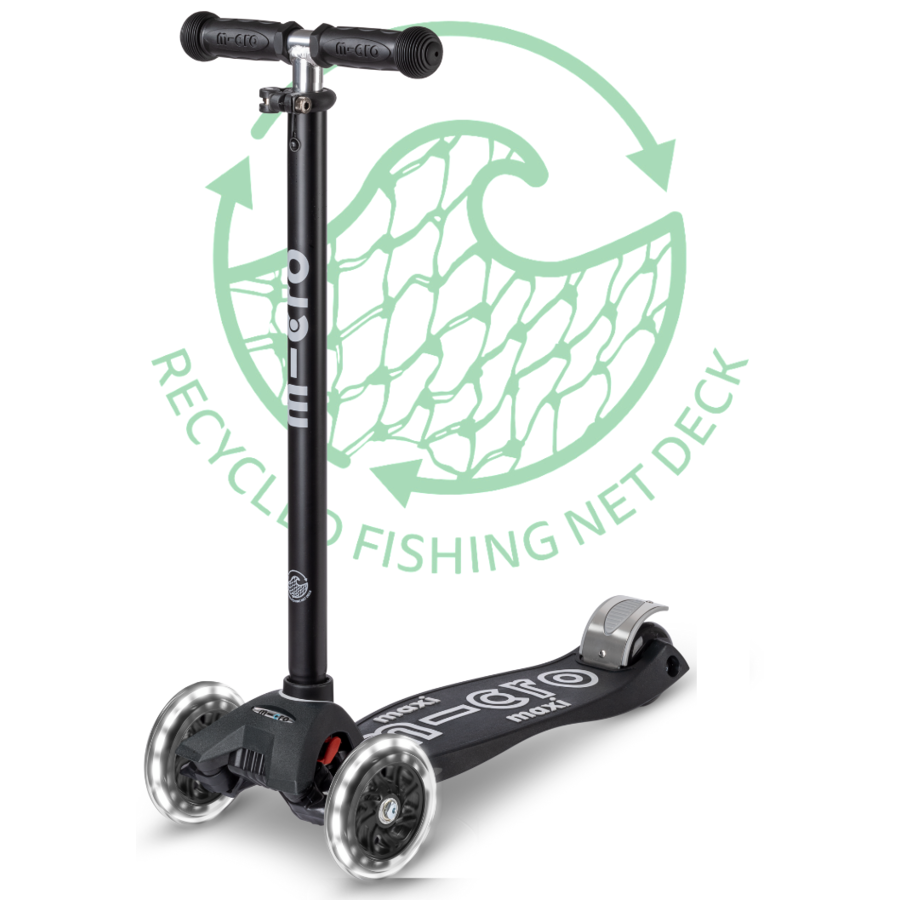Ongeveer 10 procent van het plastic afval in de oceanen is afkomstig van de visserij. Jaarlijks blijft naar schatting 640.000 ton netten en ander materiaal in de wateren achter. Van een deel van dit afval, dat op stortplaatsen wordt ingezameld, maken we onze duurzame kindersteppen. De voetplaat en rem van de Maxi Micro Deluxe ECO zijn gemaakt van gerecyclede visnetten en ander plastic afval. Daarnaast heeft het product dezelfde eigenschappen als de populaire Maxi Micro Deluxe.