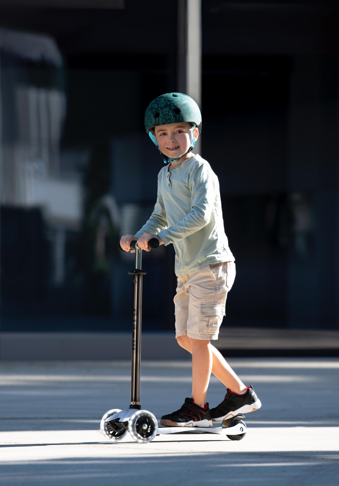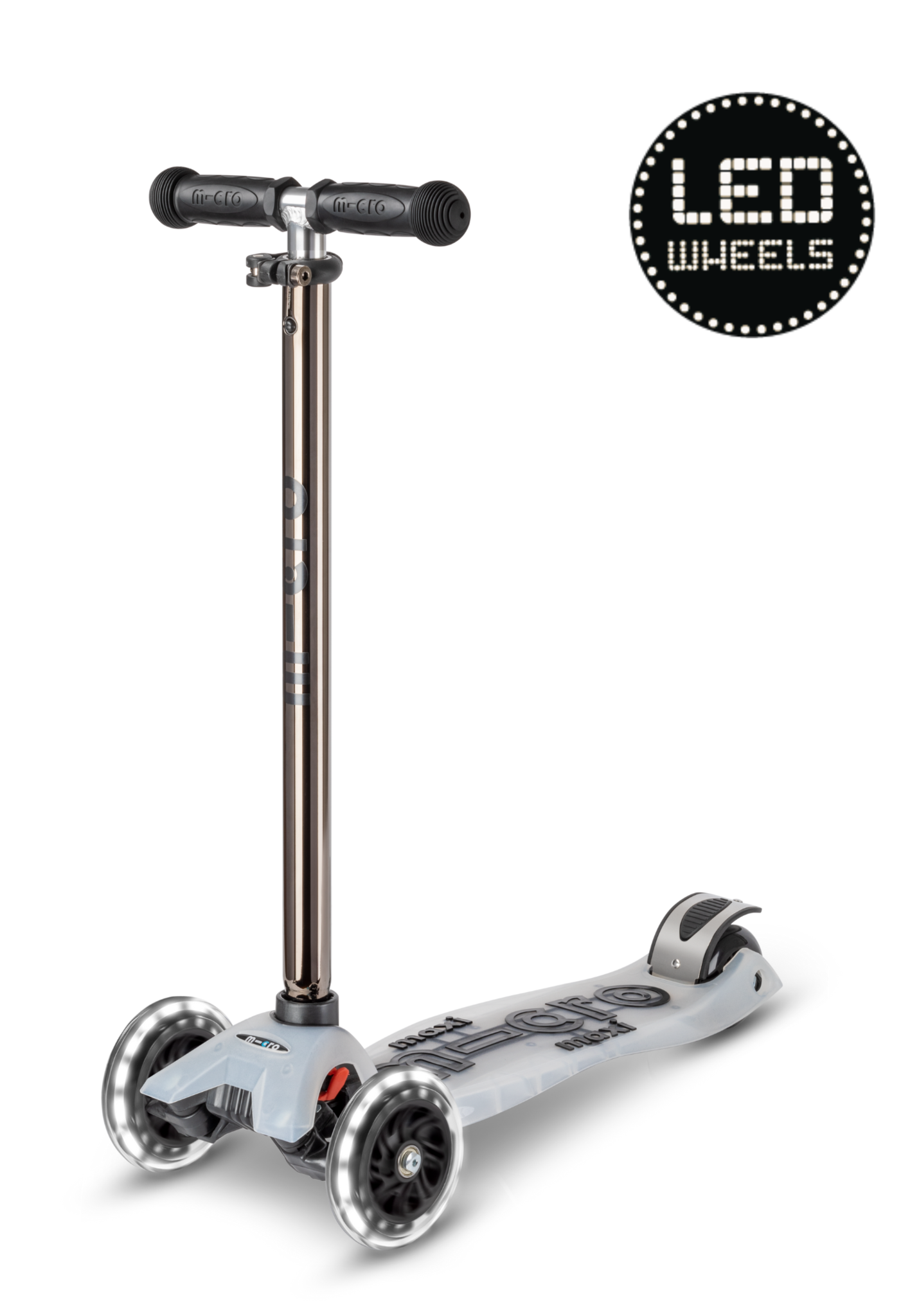 Deze Maxi Micro step heeft Led lampjes in de wielen die zorgen voor een feestelijke rit en meer zichtbaarheid in het donker! De Maxi Micro step is ontwikkeld voor kinderen van 5-12 jaar. Deze stoere hightech kinderstep heeft het unieke “lean-and-steer” stuurmechanisme waarmee je door de bochten surft. Je stuurt door je gewicht te verplaatsen, hetgeen een hoge fun factor heeft. Het Zwitsers ontwerp is veilig en stabiel door zijn dubbele voorwielen, lage fiberglass bord en stalen rem.