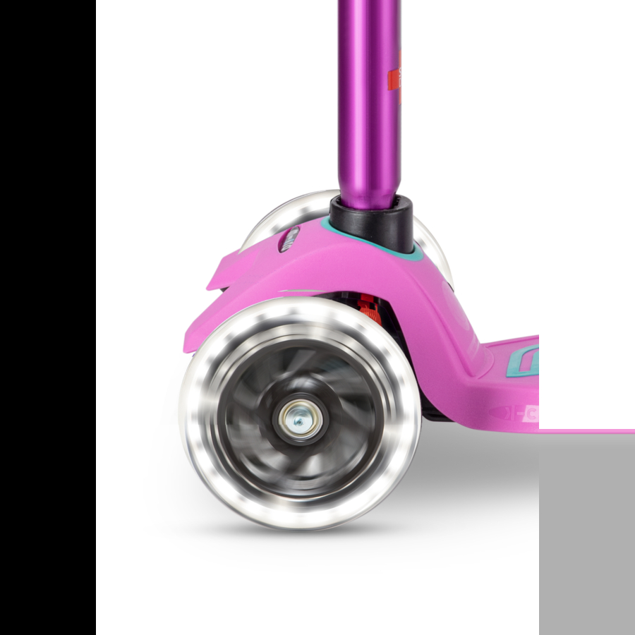 Deze Maxi Micro step heeft Led lampjes in de wielen die zorgen voor een feestelijke rit en meer zichtbaarheid in het donker! De Maxi Micro step is ontwikkeld voor kinderen van 5-12 jaar. Deze stoere hightech kinderstep heeft het unieke “lean-and-steer” stuurmechanisme waarmee je door de bochten surft. Je stuurt door je gewicht te verplaatsen, hetgeen een hoge fun factor heeft. Het Zwitsers ontwerp is veilig en stabiel door zijn dubbele voorwielen, lage fiberglass bord en stalen rem.