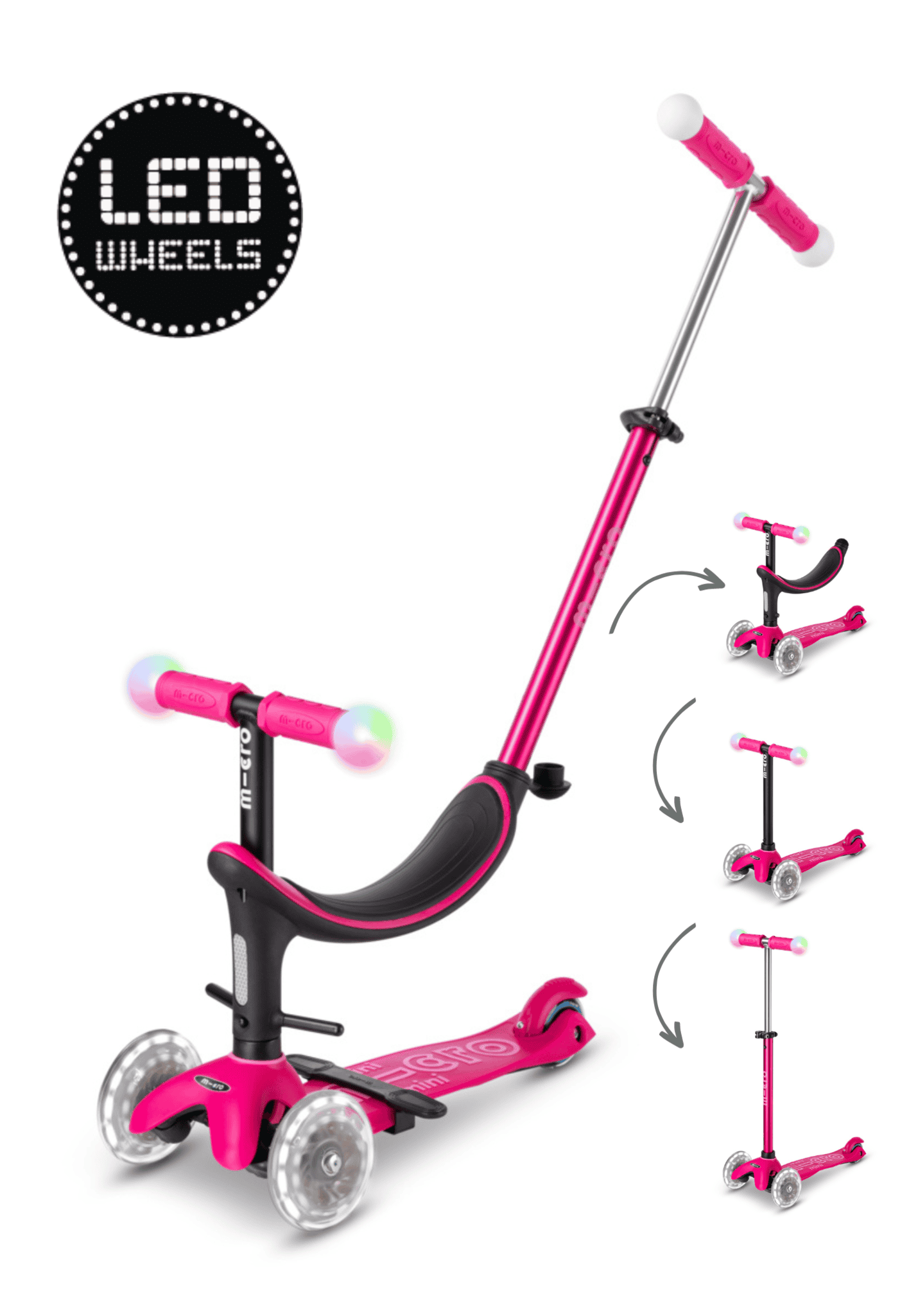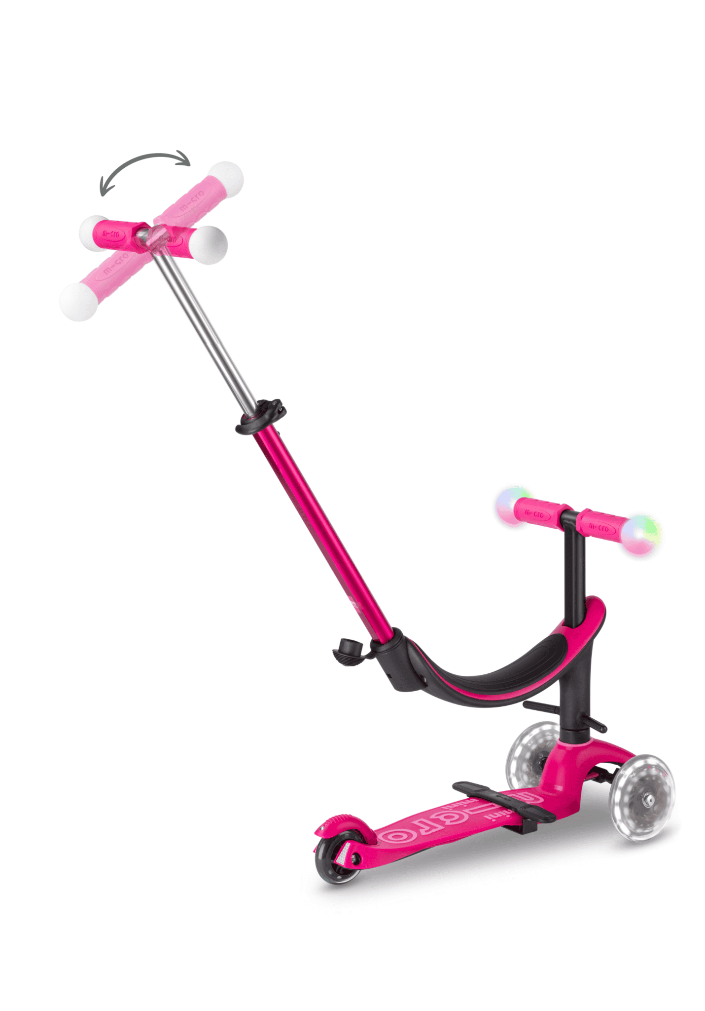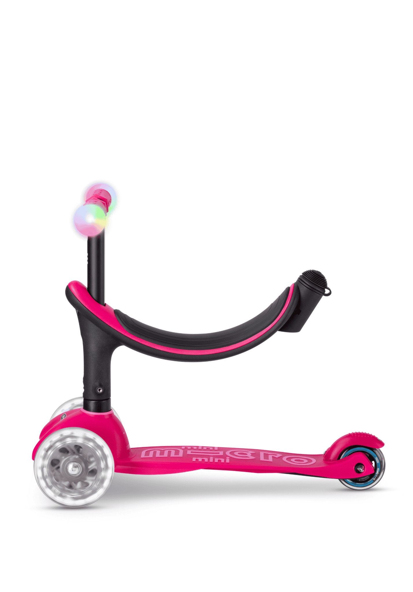Met het lage stuurzitje voor de Mini Micro step kunnen kinderen vanaf 1 jaar al beginnen met steppen. Je kind stuurt door naar links of rechts te leunen, dit bevordert coördinatie en evenwichtsgevoel. Met de duwstang kun je je kind gemakkelijk voortbewegen als het moe is, of als het wat hulp nodig heeft. En door de LED wielen is het steppen extra leuk en is je kind bovendien goed te zien in het donker, extra veilig.