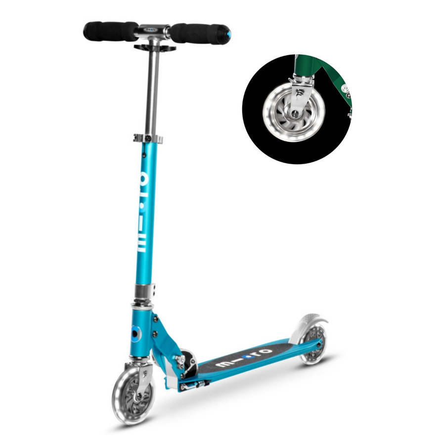 Mooie twee wiel step met LED verlichting in de wielen. De slimme LED-technologie gebruikt inductie-energie om de kracht die kinderen creëren terwijl ze steppen. Geen batterijen. Geen gedoe. De wielen lichten wit op, om de donkerste avonden te verlichten en de meest gewone dagen op te fleuren. Kinderen vinden het geweldig. De Sprite stuurt als een fiets en rijdt nagenoeg geruisloos. Of het nu gaat om het opbouwen van snelheid of het nemen van obstakels, kinderen kunnen het gemakkelijk doen dankzij het slimme Zwitserse ontwerp van de Sprite.