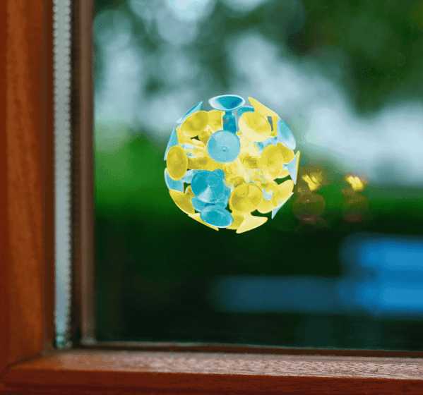 Een bal blijft alleen aan een oppervlakte kleven als een andere kracht groter is dan de zwaartekracht. Gooi deze kleurrijke bal tegen een vlak oppervlakte en hij zal blijven hangen door de zuigkracht van de zuignappen terwijl de bal kleurrijk verlicht wordt. De uitleg over het fenomeen `zwaartekracht` is geheel Nederlandstalig.