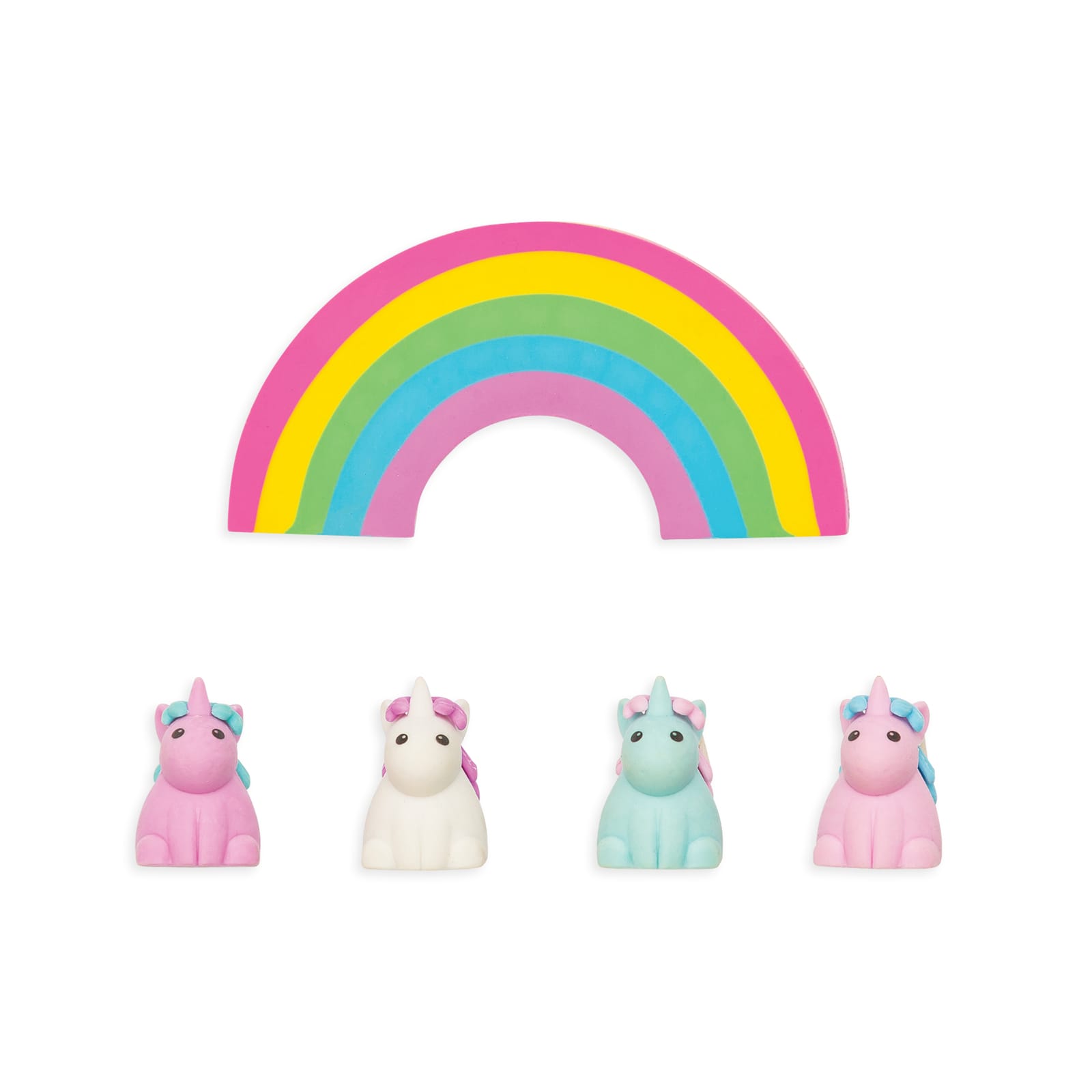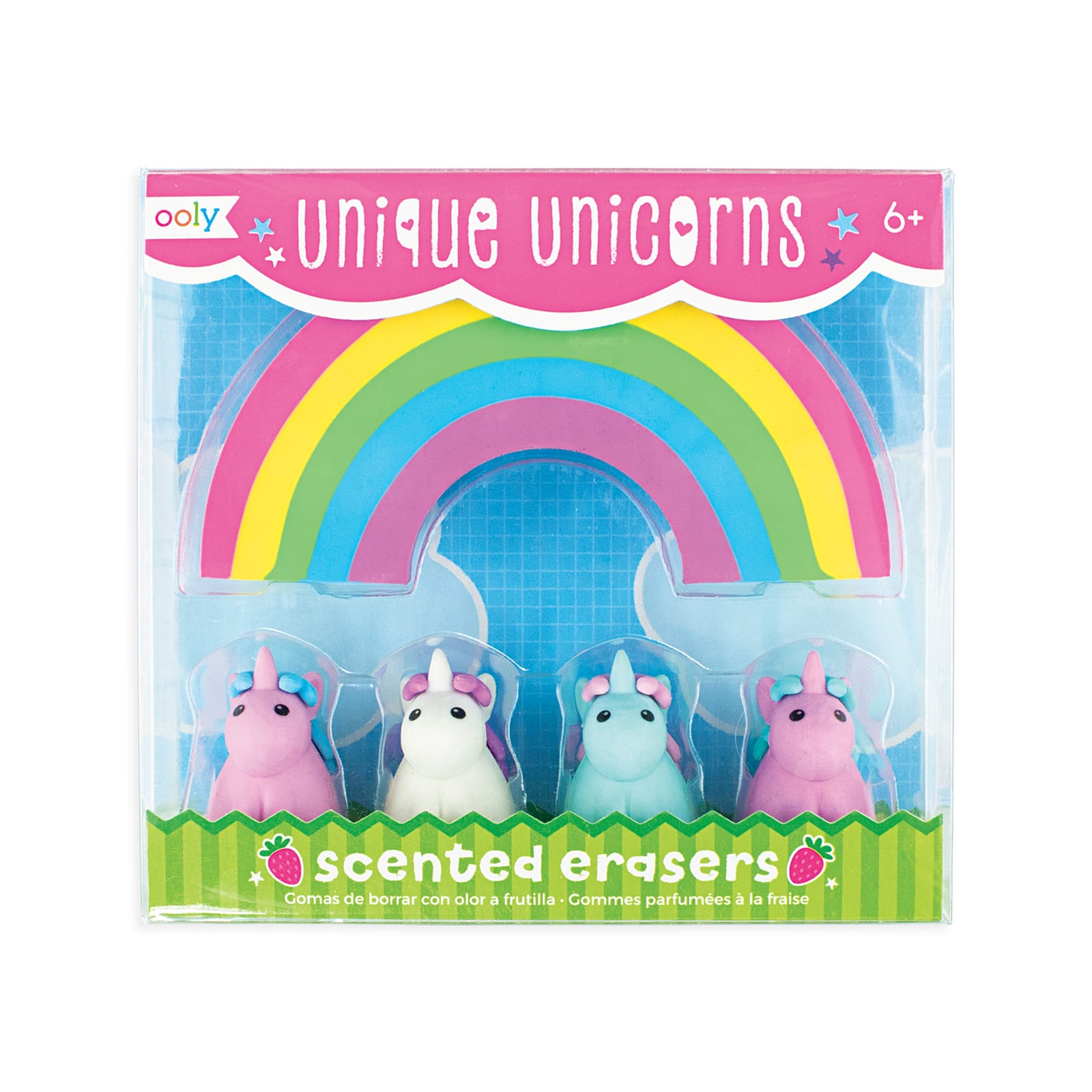 Set van 5 unieke eenhoorns aardbei geurende gummen. 4 eenhoorns en 1 regenboog gum.