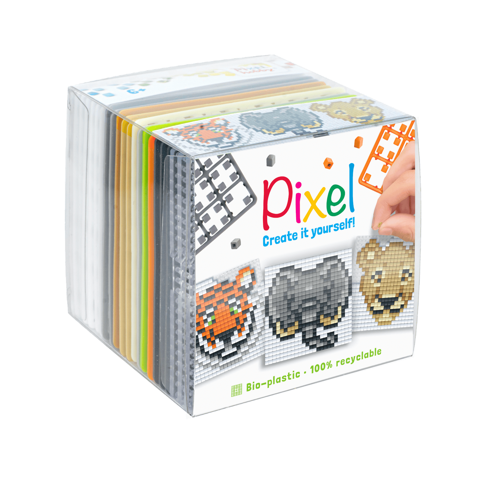 De pixels zijn voor meer dan 94% gemaakt van kunststof op biologische basis (suikerriet).