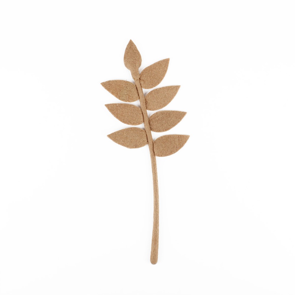Tak met blaadjes in de kleur beige. In de stengel is metaaldraad verwerkt zodat de tak in vorm gebogen kan worden indien gewenst. Erg leuk in een vaasje.